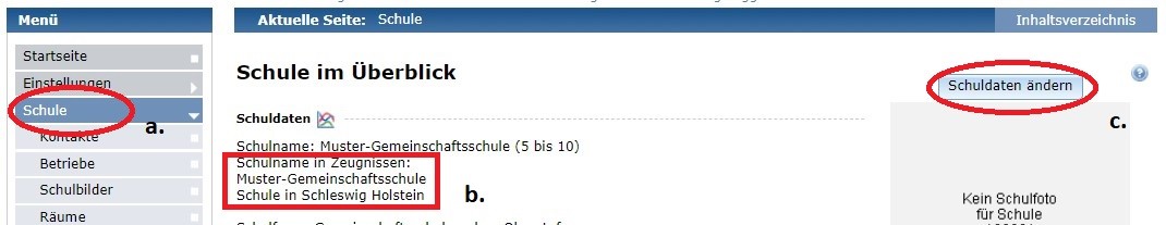 b. Überprüfen Sie den „Schulnamen in Zeugnissen“.