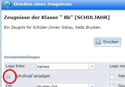 e. Egal ob Sie den Namen angepasst haben oder ihn belassen haben, muss der Knopf „Schulkopf anzeigen“ angehakt sein.
